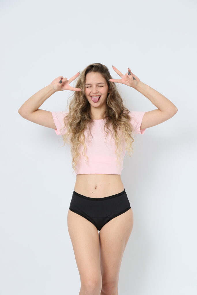 As calcinhas absorventes da Violeta Cup possuem formato tanga e hot pant, proporcionando muito conforto sem marcar a roupa. É como se você estivesse usando só uma calcinha!
