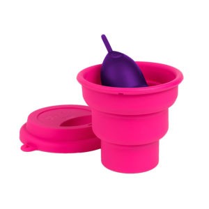 2) Para higienizar o coletor menstrual – E pode ser usado para higienizar o seu coletor menstrual Violeta Cup no micro-ondas. Diferente da caneca higienizadora, ele é retrátil, então fica mais fácil de carregar.